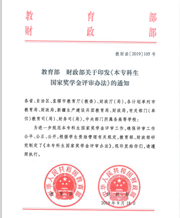 第一条 为规范本专科生国家奖学金评审工作,保证评审工作的公正、公平、公开,根据员工资助管理有关规定,制定本办法。第二条 教育部、财政部成立评审领导小组,设立评审委员会。评审领导小组由教育部、财政部有关负责人组成,全面领导评审工作,研究决定有关评审工作的重大事项,负责聘请评审委员会组成人员,批准评审委员会提交的本专科生国家奖学金评审意见。评审委员会由具有代表性的管理人员、专家学者和员工代表组成,负责组织评审工作,向评审领导小组提出本专科生国家奖学金评审意见。根据评审工作需要,评审委员会下可设立若干评审工作小组,负责具体评审工作。
