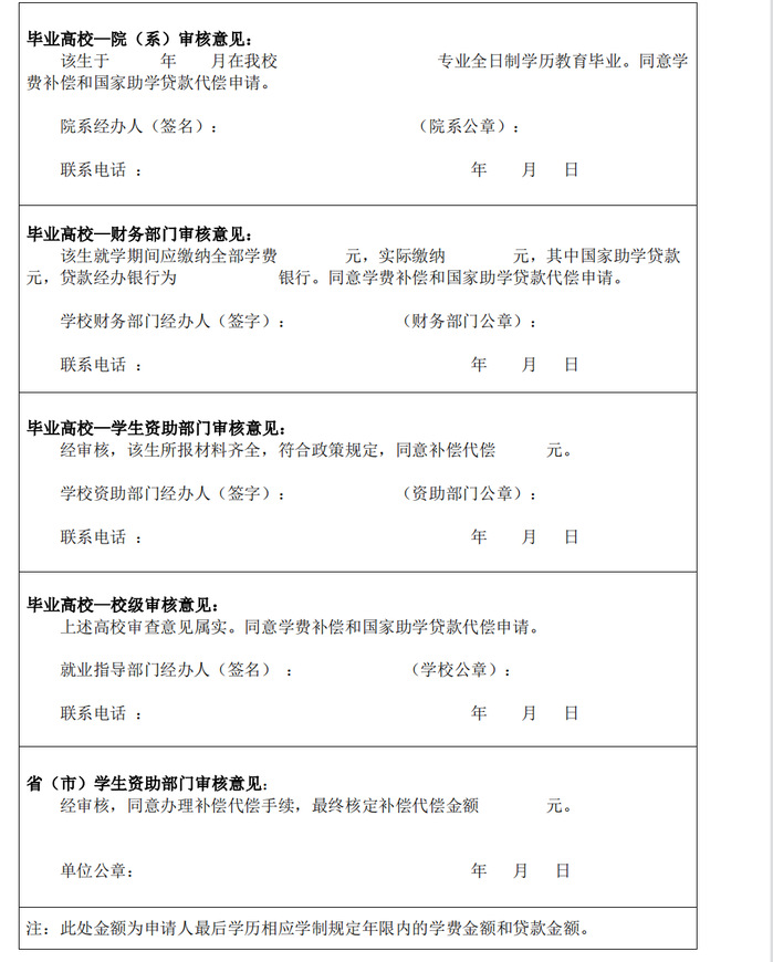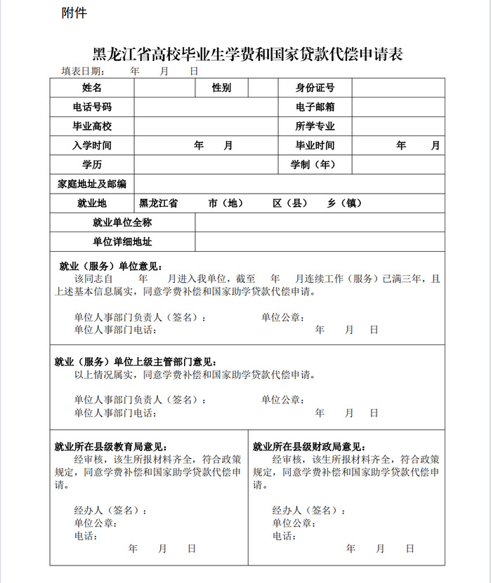 附件:黑龙江省高校毕业生学费和国家贷款代偿申请表