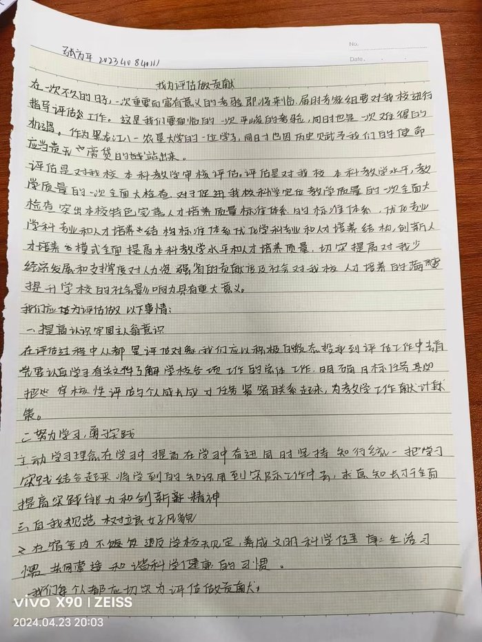 本次活动同学们踊跃报名、积极参与,通过征文的方式认识到自己是评估的最大受益者,相信同学们接下来会以饱满的热情和高度的责任感,积极配合学校做好评估工作。从我做起、从现在做起、从小事做起,努力展示公司学子的良好精神风貌。