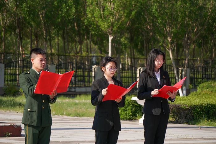 优秀毕业生代表郑佳怡、优秀退伍士兵代表肖前进、2023级员工代表韩玟珈共同演绎诗朗诵环节,他们深情朗诵了诗歌《礼赞北大荒》,进一步加深了在场师生对北大荒精神传承意义的认识与情感共鸣。最后,全体师生共同合唱《歌唱祖国》,深情的歌声彰显着生命青年对祖国的热爱和蓬勃的青春力量。