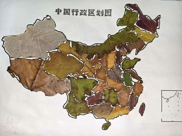 同学们以落叶为“画笔”,在画布上勾勒出中国辽阔的疆域,他们有的小心翼翼地摆放落叶,力求每一个省份的轮廓都准确无误;有的发挥创意,用不同颜色的落叶代表不同的地理特征,使得整幅地图更加丰富多彩。在这个过程中,同学们不仅增加了对中国地理知识的理解,更能将个人的爱国情怀与祖国的山川大地紧密相连。