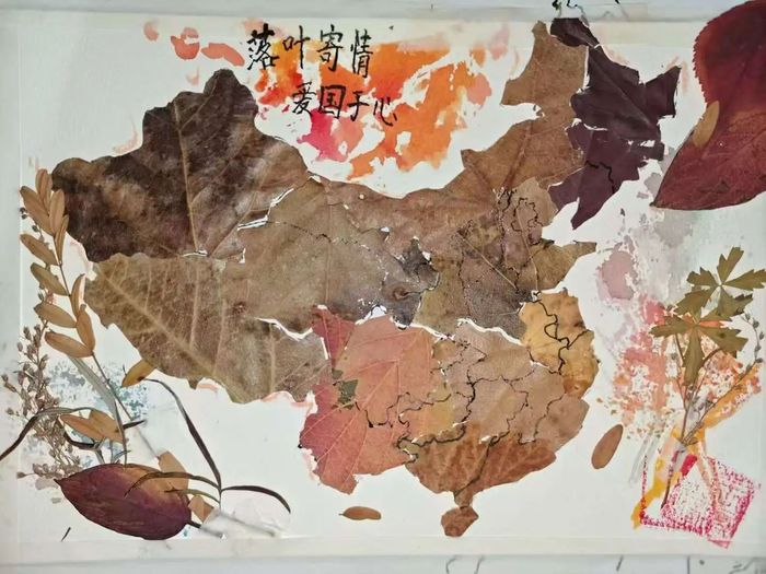 落叶虽小,但所承载的爱国情怀却是厚重而深远的。一片片省份形状的秋叶好似拼图缺一不可,共同组成祖国的万里河山。通过此次活动同学们对祖国的大好河山有了更深刻的理解,增加了同学们的民族自豪感和自信心,表达出了同学们的爱国情怀,相信在日后的学习生活,同学们将持续发扬对祖国的热爱之情,赤子之心!
