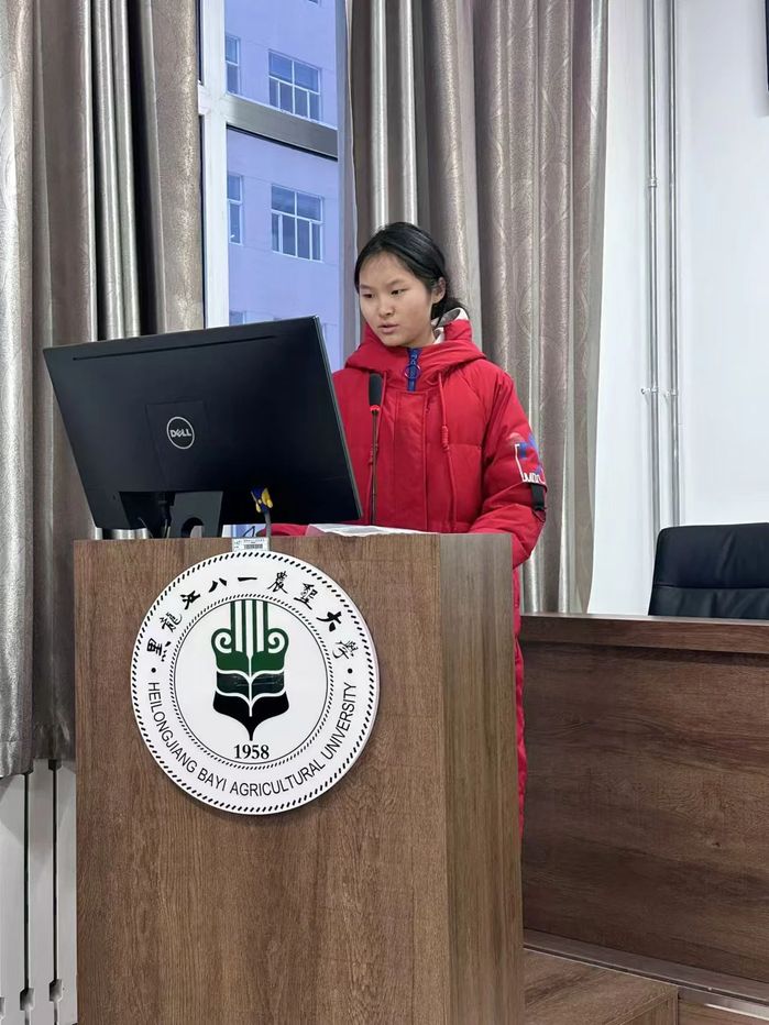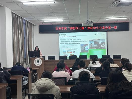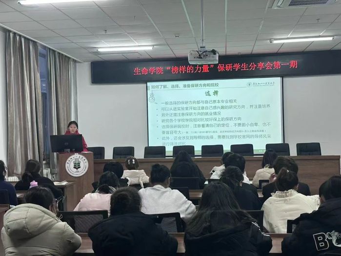 紧接着,2021级制药工程专业李悦瑛同学,已保研至中国药科大学,她就科研实践与保研的关联分享了自己的心得。她详细讲述了自己加入学院科研团队的契机以及参与 科研项目的全过程,从最初对科研项目的懵懂好奇,到一步步学习实验技能、设计实验方案,再到最终收获科研成果,这个过程中虽然充满了挑战,但也收获满满。她鼓励同学们要勇于走进实验室,积极参与各类科研项目,不仅能提升自己的实践动手能力,还能在保研竞争中展现出独特的优势。