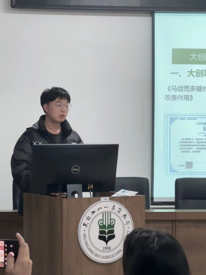 第三位进行分享的是2021级制药工程专业李卓斌同学,已保研至大连海事大学。他曾多次获得学业奖学金,被评选为省级“三好员工”,他从介绍自身科研经历及竞赛经历开始,着重强调了科创竞赛的重要性,并激励同学们积极参与各项学科竞赛,提升自己的综合素质。
