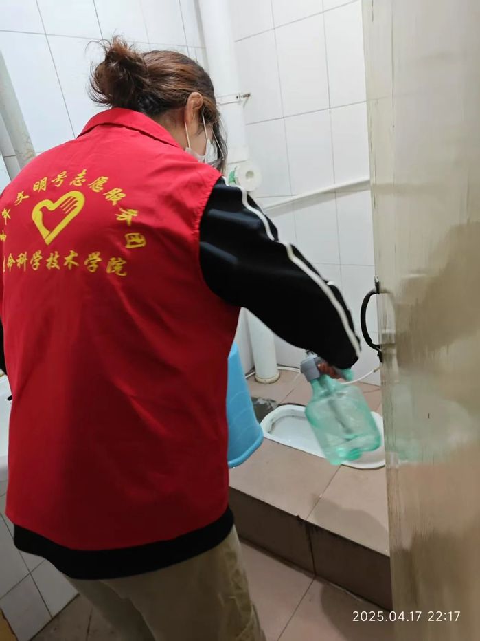 预防我拿手,防御我在行。志愿者对寝室、走廊、公共洗漱区、门把手等高接触区域进行重点消杀,采用含氯消毒液进行喷洒与擦拭,确保不留死角并提醒寝室人员通风三十分钟。志愿者们认真负责,对寝室进行全方位消杀,使细菌病毒无处可逃,为同学们的健康保驾护航。另外提醒同学们也要未来的生活中保持寝室卫生,提高自我防范意识。