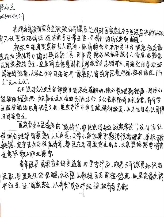 本次活动组织员工集中学习教育部思政司开展的“高校国家安全视频公开课”,授课专家结合实际案例,生动阐述国家安全各领域面临的挑战与应对策略,让同学们深刻认识到国家安全与个人息息相关。在场同学纷纷表示,通过此次活动,他们对国家安全有了更全面深入的理解,有效提升了国家安全意识和责任感。