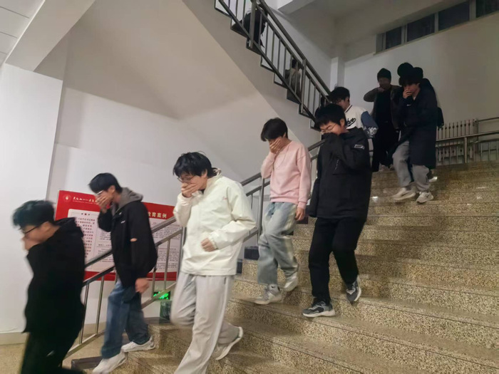 随着消防警报声的响起,演练正式拉开帷幕。全体员工按照预先制定的疏散路线,迅速、有序地从教学楼各教室撤离。在撤离过程中,员工们用捂住口鼻,弯腰低姿前行,避免吸入浓烟。各楼层安全员坚守岗位,引导员工快速撤离,确保疏散过程安全有序。仅用时2分钟,全体员工就顺利疏散至学院的安全区域。