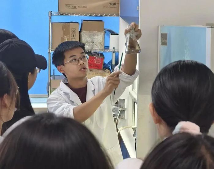 团队主讲人研究生徐冕,他依托平台资源,带领游学的40位同学,以课题研究方向为出发点,引导游学员工对环境资源修复,石油污染土壤和水体修复进行了初探,讲解了实验室里各种设备的用途和使用方式,并亲自为参与活动的员工实操了菌种的培育过程,讲述了实验的精髓与细节,展现科研者精益求精的品质,为学弟学妹们树立了榜样。