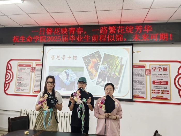 随着活动接近尾声,毕业生们拿着亲手制作的簪花学士帽,笑容满面地进行合影留念。这场将非遗文化与毕业情怀深度融合的活动,不仅让古老技艺在青春的创意中焕发出新的活力,更成为了毕业生们对校园生活最诗意的道别,为求员工涯画上了圆满的句号。