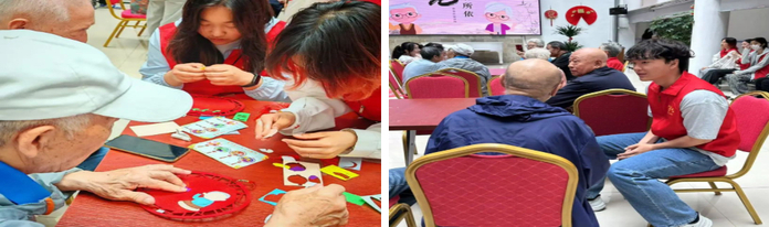 活动前,学院青年文明号志愿服务团的工作人员对志愿者们进行了培训。活动当天,志愿者们与老人们一起动手感受传统文化的魅力,体验制作艾草锤,编织画,并欣赏了舞狮表演,现场其乐融融,充满了温情。