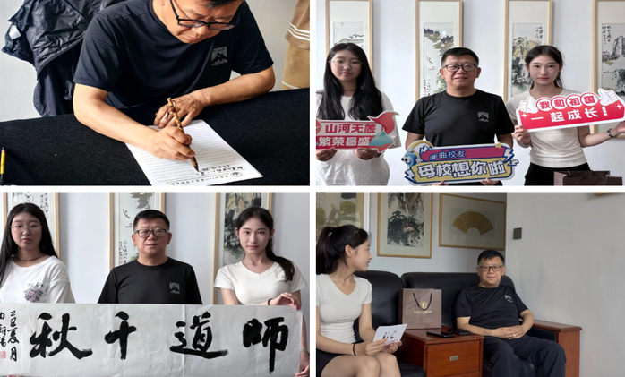 曲朝阳,中国书法家协会会员 ,黑龙江省美术家协会会员 ,哈尔滨商业大学客座教授,黑龙江省画院研究员,肇东市书画院经理。交流中,他分享了自身的成长历程、艺术追求与创业感悟,其对母校的深厚情感、对事业的执着坚守,为在场同学带来深刻启发,让大家深刻体会到“以兴趣为引、以坚持为基”方能在人生道路上稳步前行的道理。