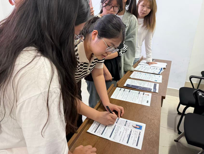 集中讲解结束后,王东与学院的就业辅导员老师共同为同学们进行一对一简历指导,毕业生们提前携带好个人简历,按照现场指引有序排队等候,王东则针对每位毕业生的专业细分方向、求职意向、实践经历具体情况,对简历进行逐字逐句的细致审阅,并给出定制化指导建议。