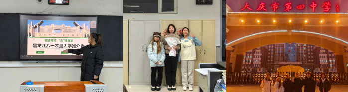 2026年1月11日,“薪火续航队”重返大庆市第四中学,开展“回访母校,‘农’情筑梦”主题宣讲。队员们精心筹备,介绍校史与专业特色,分享备考经验,耐心解答学弟学妹的疑问,并解读奖助政策。活动尾声,队员们向恩师献花致谢,在母校门前合影留念,这场双向奔赴的交流,传递了青春力量,也让队员们体悟到传承的意义。