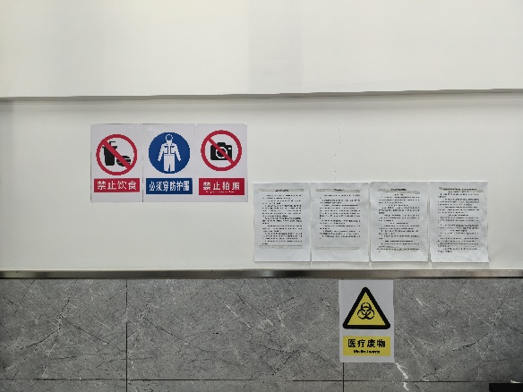 为提升实验室安全管理,保证实验课安全顺利进行,中心要求各实验室进行了一系列安全保证措施。如对相关危险点粘贴警示标识,实验室管理制度上墙,配备相关消防器材等;并在每门实验课开课前,对员工进行实验室相关安全培训,并进行安全考核,只有考核通过的员工才可进入实验室开展实验。